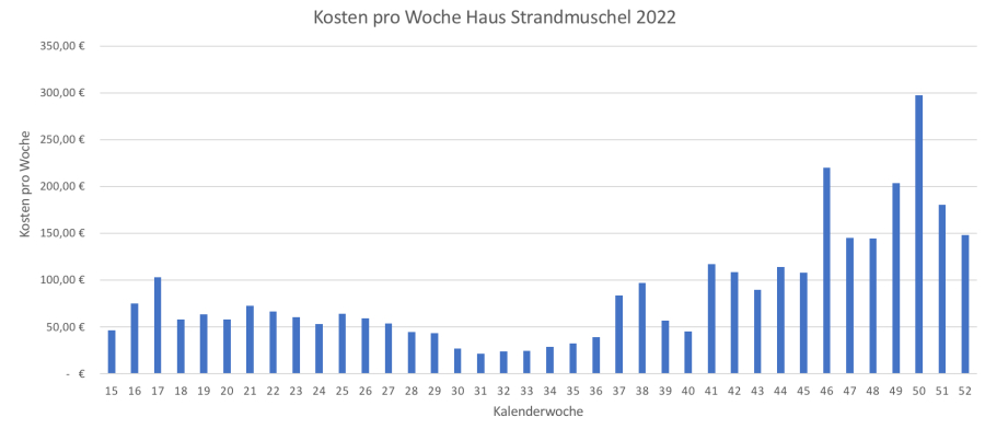Hier zeigen wir Ihnen die wöchentlichen Energiekosten für Strom und Gas in unseren Häusern. So können Sie sich für Ihren anstehenden Urlaub orientieren an den Verbräuchen unserer Gäste.